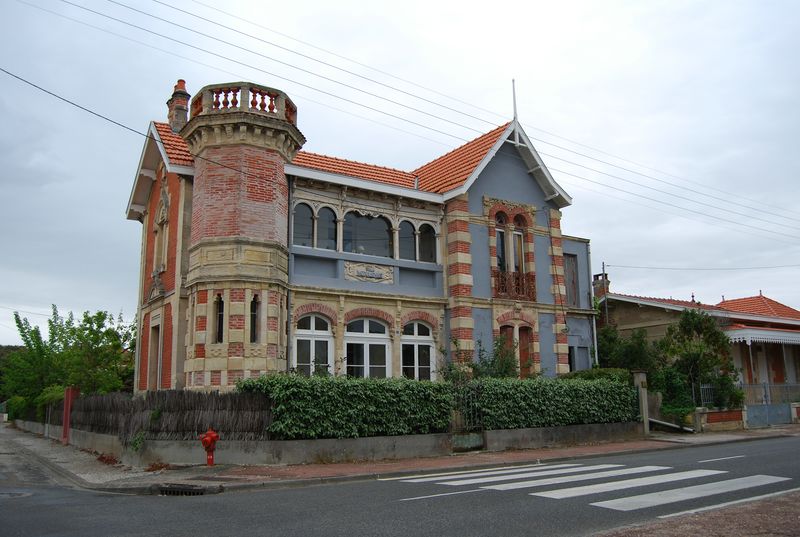 En effet, au milieu du XIXème siècle, la vague des cité balnéaires fait renaître la ville côtière : plantations de pins pour fixer les dunes, construction des premières villas, lancement des travaux de désensablement de la basilique. Cette métamorphose se confirmera à partir de 1874 grâce à l’arrivée du chemin de fer, qui accélère le développement ; tandis que la basilique sera complètement remise à jour en 1905. Les constructions de demeures de villégiature se poursuivront durant la première moitié du XXème siècle.Aujourd’hui, la ville présente un patrimoine témoin de cette époque, et l’architecture soulacaise en est un archétype reconnu. Ses villas, modestes en taille mais pomponnées comme des maisons de poupées, sont de formes variées, souvent composées de tours, vérandas et bow-windows, et surplombées de toîtures complexes. Les charpentes qui soutiennent celles-ci sont travaillées comme des ornements et de beaux lambrequins en bois découpé en ornent les avant-toits. Pierre de taille et briques composent des façades soignées, sur lesquels le nom de la maison se doit d’être affiché. De vastes quartiers pavillonnaires se construisent ainsi, assez denses et suivant une trame orthogonale dans le centre, autour de la basilique, plus diffus dans le sud de la commune et suivant une organisation rayonnante des rues.