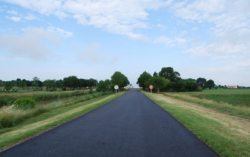Si la digue côté estuaire et le canal de ceinture au pied des coteaux forment les éléments clefs du réseau hydraulique d’assèchement des marais, son fonctionnement repose sur de nombreux autres outils. A commencer par le marais de la Vergne, à l’est, qui reçoit les eaux d’un petit bassin versant, acheminées par quelques ruisseaux. Ceux-ci,d’abord dirigés vers le canal des Sables, sont ensuite évacués par le canal Saint-Georges. Mais le débit de ce dernier devient insuffisant lors des périodes de forte précipitations ; le marais de la Vergne, bien que plus élevé, se trouve alors inondé et joue le rôle de régulateur afin de protéger les polders plus à l’ouest. Pour ces derniers, cernés par le canal de ceinture, les chenaux principaux sont organisés suivant un plan orthogonal, parallèlement à la digue ouest - ainsi que les routes, qui suivent et révèlent cette structure du paysage. Ils récoltent les eaux issues des fossés de coulée (qui délimitent les métairies, unités d’exploitation traditionnelles en bandes d’une dizaine d’hectares), eux-mêmes réunissant celles des fossés de travers (qui bornent les parcelles exploitables, ’barrails’ de un à deux hectares).