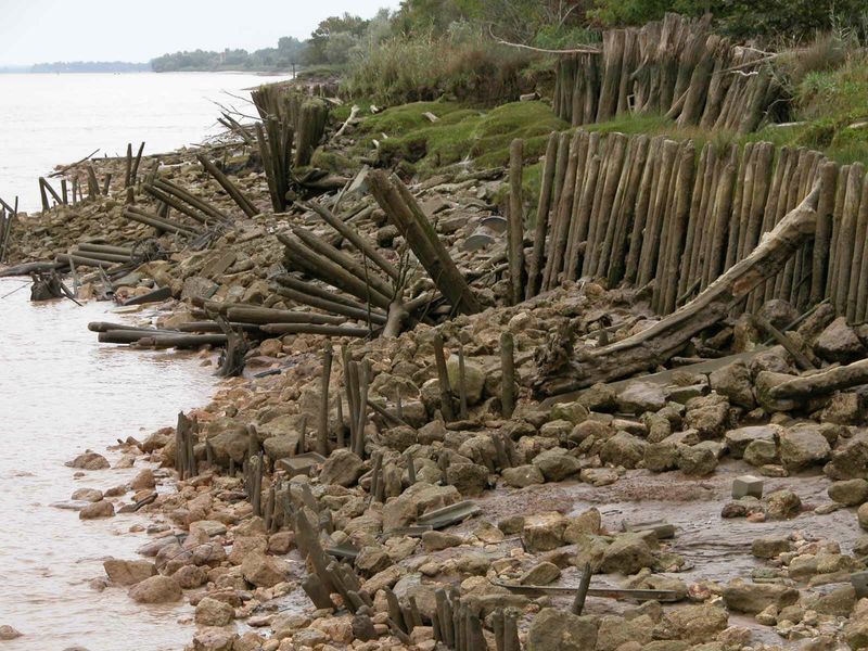 Les berges érodées et les ouvrages de défense endommagés : mise en place de systèmes de protections végétales, consolidation ou renaturation selon les milieux naturels, organisation de "vigilance citoyenne".