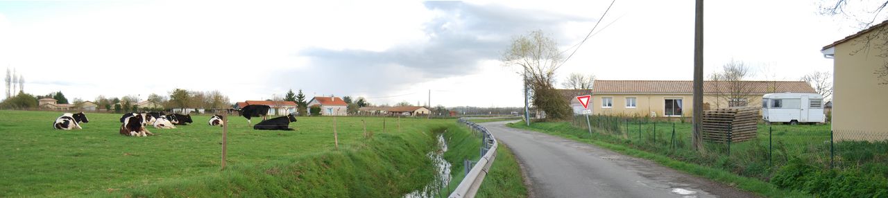 Entre ces villages, le bâti s’étire en longues séries de bâtiments pavillonnaires, suite de maisons banales avec jardinet, en retrait de la route et accompagnées de haies opaques de thuyas.