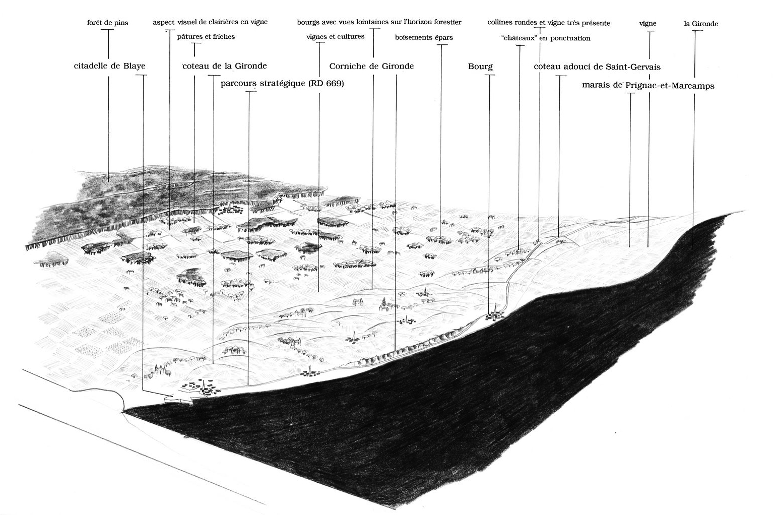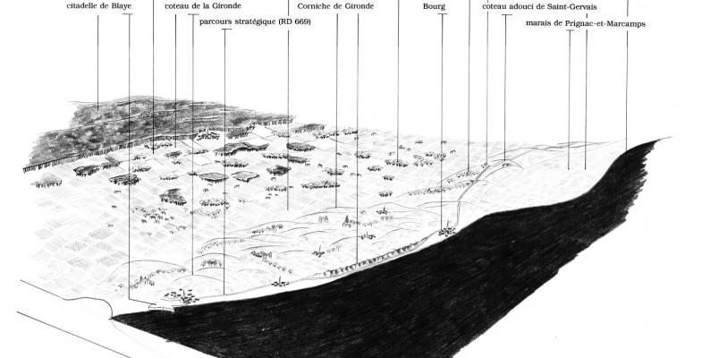 Les coteaux calcaire de Bourg à Blaye offrent une situation unique à l’échelle du département, puisque la corniche de Gironde est un véritable balcon sur l’estuaire en contrebas, donnant à voir le Bec d’Ambès, les îles, et les horizons du Médoc sur l’autre rive.Mais au-delà de cette situation privilégiée, il s’agit d’un coteau habité et exploité de multiples façons.