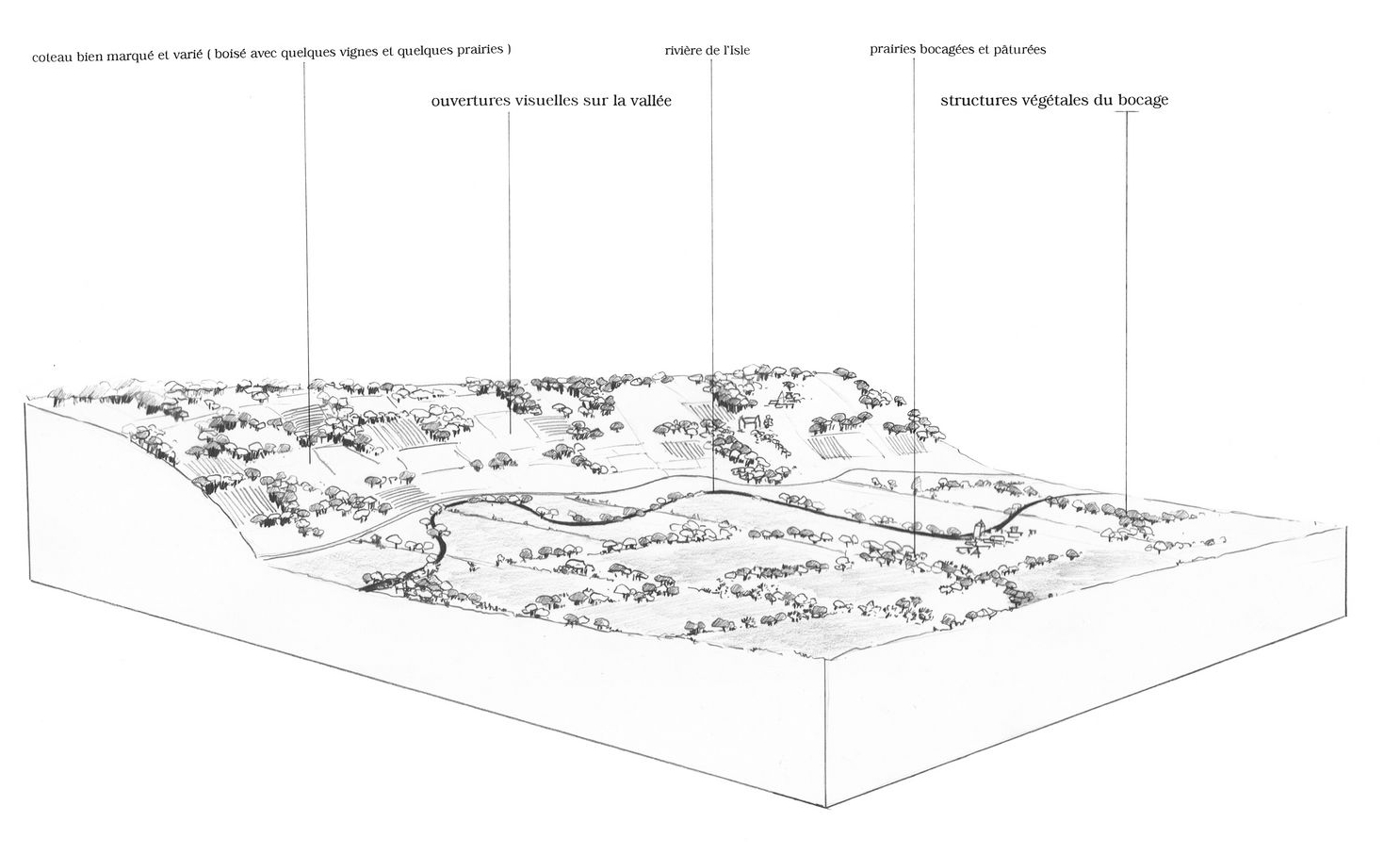 L’absence de presque toute trace d’urbanisation dans le lit inondable de la rivière participe également de cette qualité des paysages de la vallée : depuis le coteau abrupt de la rive droite, on perçoit une composition uniquement végétale.