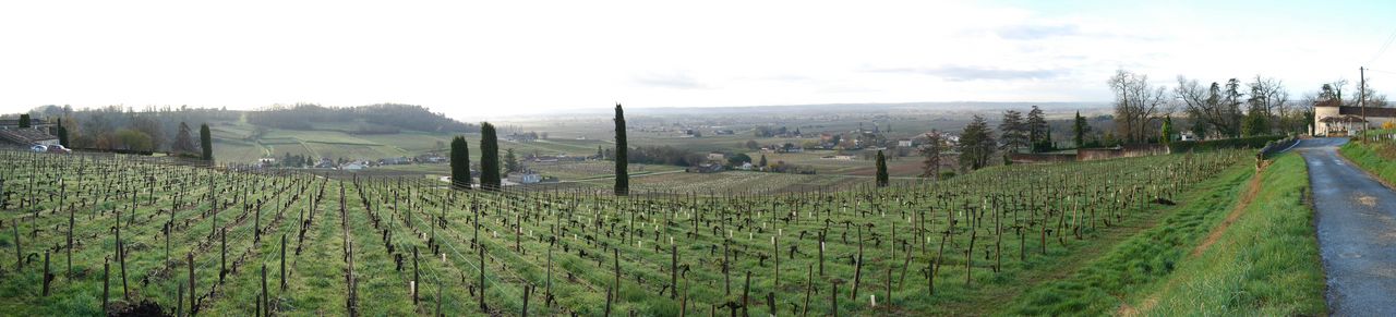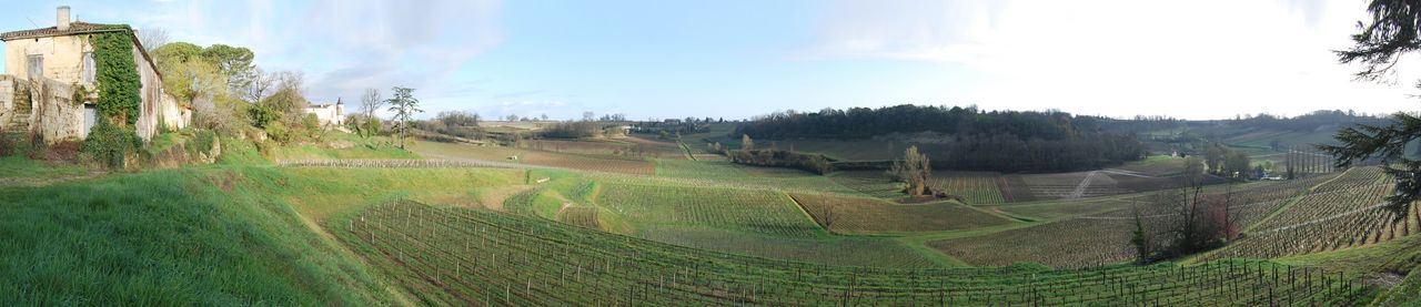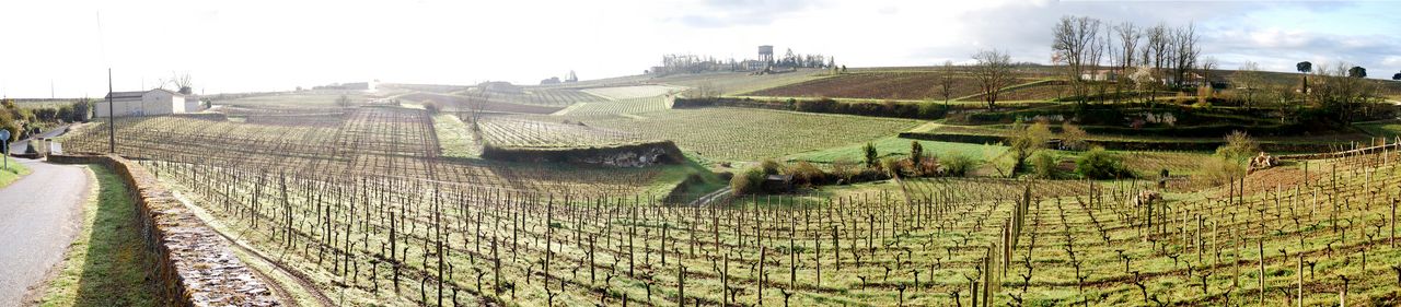 Le plateau de Saint-Emilion est avant tout marqué et défini par la culture de la vigne : les règes se succèdent par milliers sur de vastes parcelles, révélant le lien très ancien qui associe ce pays à la production de vin. Soulignant chaque relief par la régularité de leurs longues rangées parallèles, peignant ce paysage avec une précision impressionnante, les vignes forment une nappe continue, des hauteurs du plateau aux coteaux des vallons.