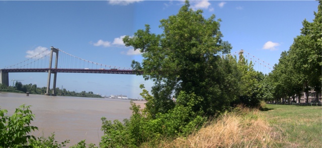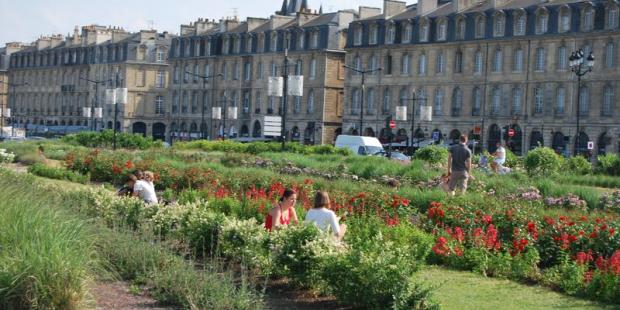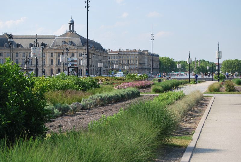 La personnalité du paysage de Bordeaux n’est pas qu’inscrite dans la pierre. Sous nos pieds, elle est aussi faite des petits carreaux de terre cuite qui couvrent les trottoirs. Mais plus largement, elle tient aux éléments naturels avec lesquels elle dialogue de façon particulièrement généreuse : l’eau large et puissante de la Garonne, le long horizon du coteau de Lormont qui se déroule en rive droite, et qui a tant marqué Stendhal, et jusqu’au ciel océanique, qui pénètre par grandes coulées en ville grâce à des volumes construits plus bas que ceux des autres grandes villes Françaises : tels sont quelques-uns des éléments d’une ville-centre qui respire au contact de la grande nature.