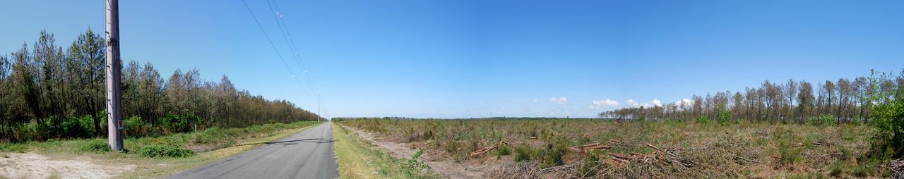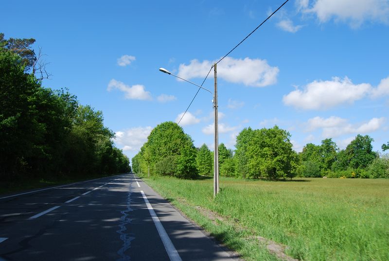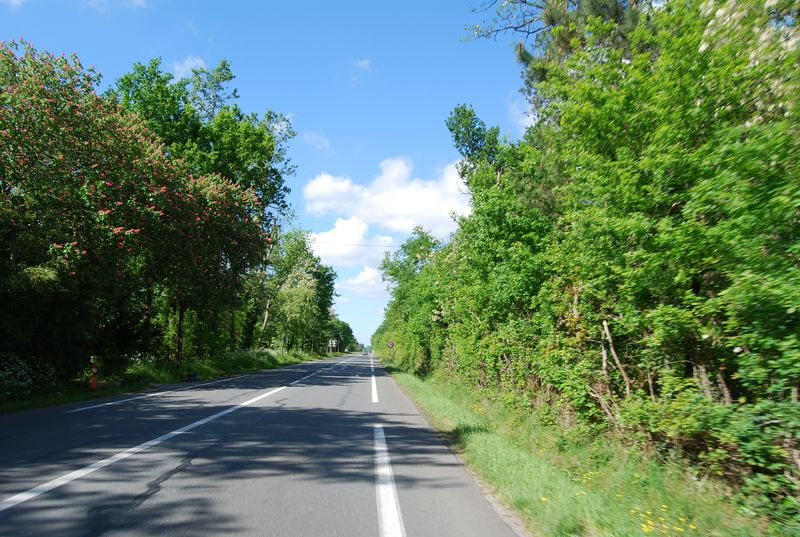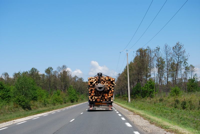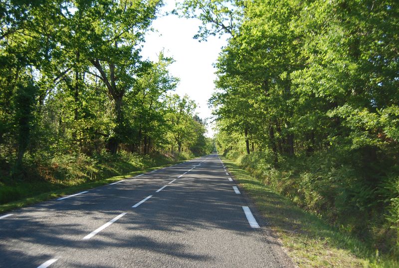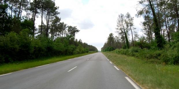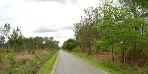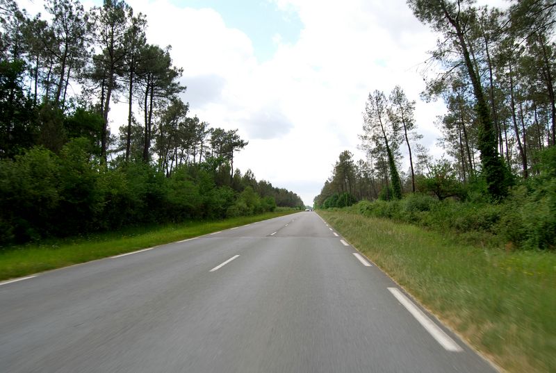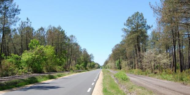 La découverte des paysages des Landes girondines se fait avant tout par la route : RD1010 de Bordeaux à Belin-Béliet, RD3 et RD5 du nord au sud, RD106 de Bordeaux à Lège-Cap-Ferret... Les trajets reliant les villages isolés font parcourir de longues distances au travers de boisements sans fin. Développé pour l’exploitation de la pinède, le réseau des routes présente des tracés rectilignes, filant tout droit entre les arbres. C’est donc de la qualité de sa relation à la forêt et de son traitement d’accompagnement que dépend l’animation du parcours : légère surélévation ’en digue’ qui favorise les vues, enherbement des bas-côtés qui éclairent, égayent et donnent un air soigné, transparence de la forêt qui évite l’effet de couloir...