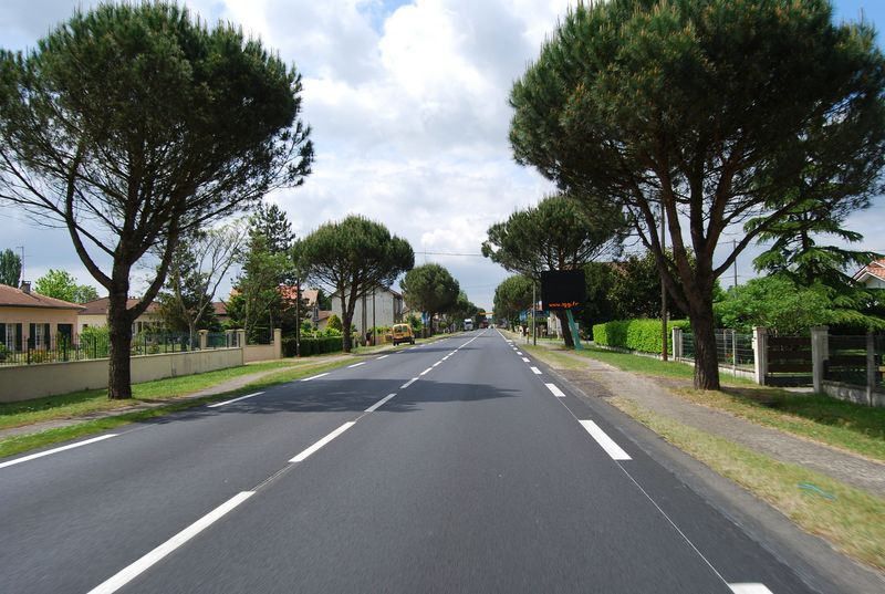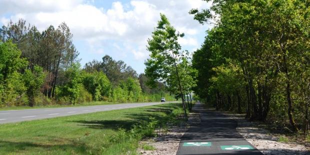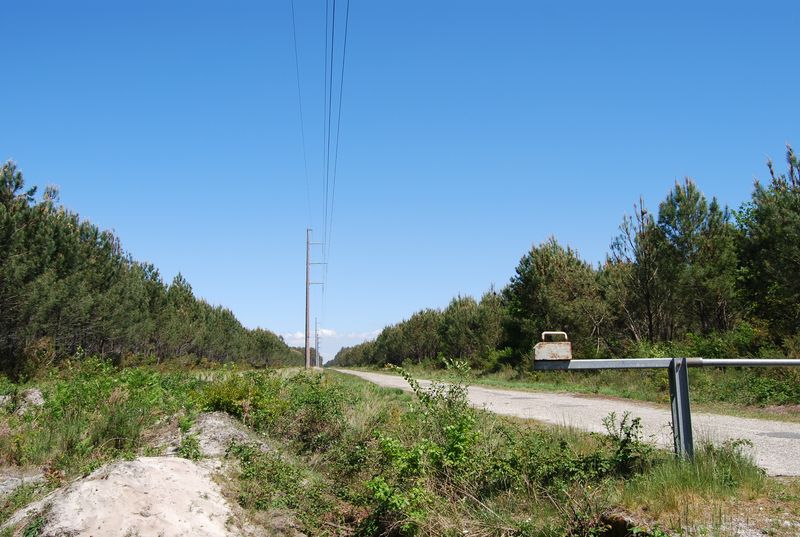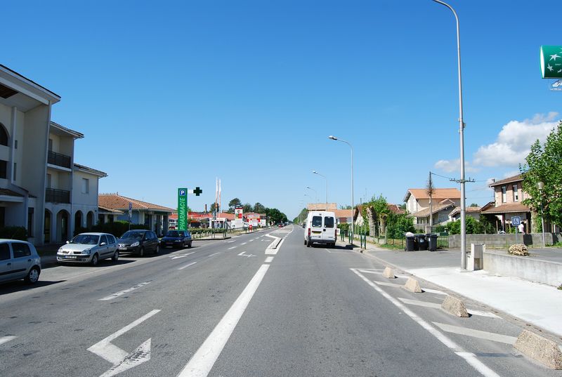 Suivant l’exemple de l’ancienne voie ferrée Bordeaux-Lacanau, transformée en piste cyclable, quelques axes proposent des liaisons douces, parallèles mais bien séparées de la route principale : ces itinéraires offrent l’opportunité d’une redécouverte des paysages forestiers des Landes girondines. Avec les pressions foncières grandissantes, exercées notamment autour des agglomérations de Bordeaux et d’Arcachon, certains tronçons de routes se voient gagnés par une urbanisation linéaire importante. Formée principalement de zones d’activités et de lotissements pavillonnaires, celle-ci constitue progressivement une écorce accompagnant les voies. Si quelques-unes de ces opérations profitent du contexte forestier pour proposer une architecture inscrite harmonieusement dans son contexte, la plupart s’implantent en bordure de voie et présentent une architecture banalisante. Les couloirs bâtis ainsi créés sont coupés des paysages voisins, sans proposer la qualité d’espaces urbains bien constitués. Plus grave, l’irrésistible urbanisation linéaire, en particulier au fil de la RD1250 (Bordeaux-Arcachon) tend à faire disparaître le vaste espace de respiration qui distingue l’agglomération bordelaise de l’agglomération arcachonnaise.