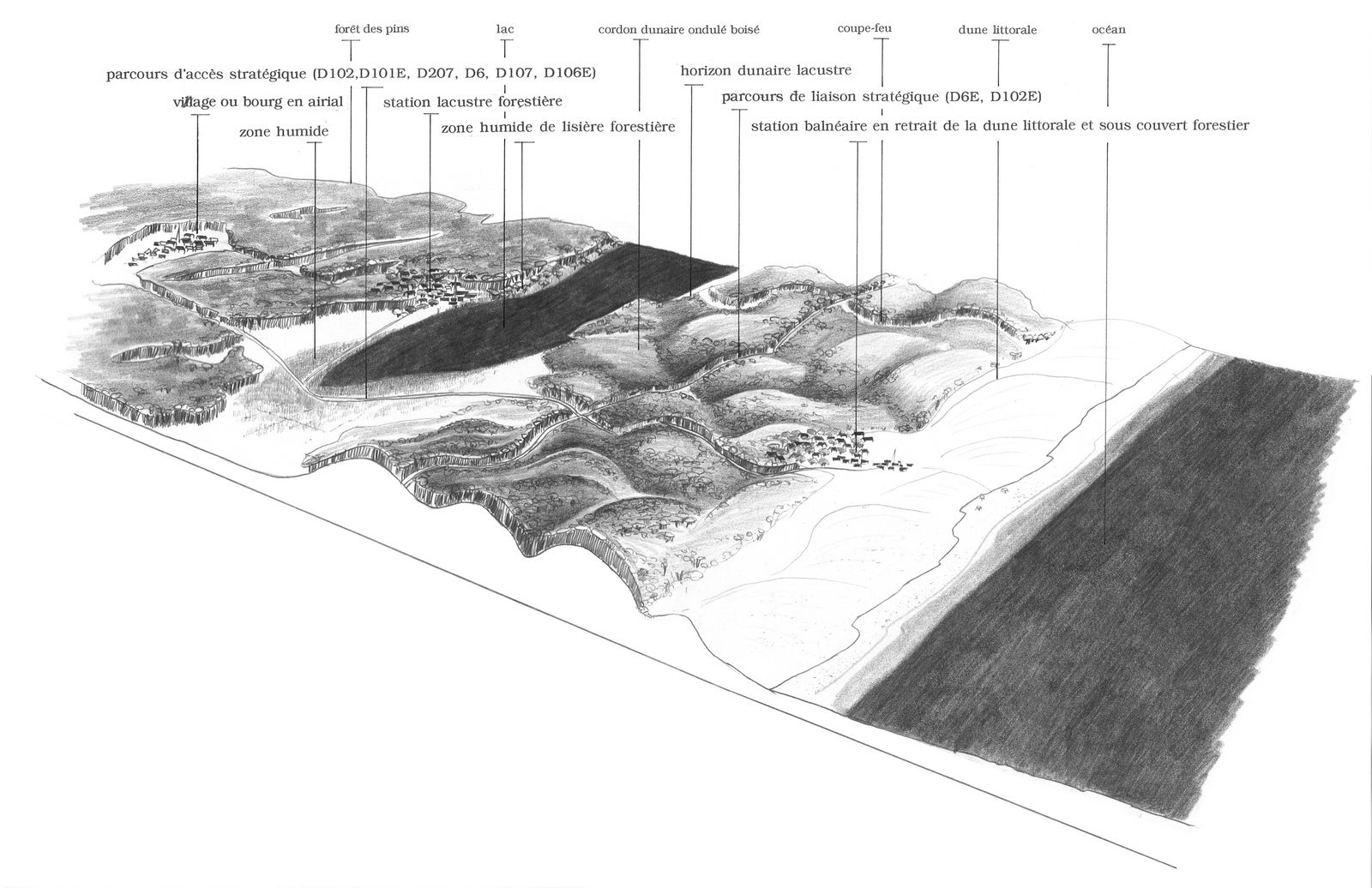 - les lisières du massif : la forêt des Landes ne s’achève pas par des limites nettes, mais dessine des paysages de lisières particuliers en se mêlant aux unités voisines.
