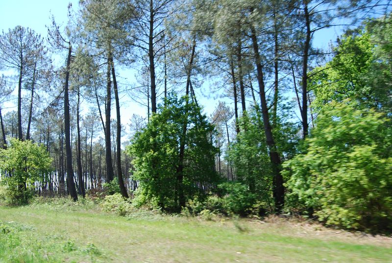 Si la pinède définit clairement l’emprise de l’unité de paysage des Landes girondines, ses limites ne sont pas aussi nettes. Contrairement aux clairières agricoles évoquées plus haut, délimitées par une opposition nette entre boisements et cultures, les lisières extérieures du massif ne dessinent pas de rupture précise. A l’ouest, la couverture boisée se prolonge presque jusqu’à l’océan Atlantique, mais le relief, l’hydrographie et l’urbanisme particuliers du littoral définissent les contours imprécis d’un paysage autre (cf unité J1 : la bande littorale). A l’est, à l’aval de Bordeaux, la forêt se délite au fur et à mesure pour laisser la place aux vignes médocaines, et un paysage de transition se dessine entre ces deux ensembles, constitué de lisières tortueuses et de clairières urbaines et viticoles. A l’amont de Bordeaux, le vignoble des Graves s’organise en grandes clairières et domine nettement la vallée de la Garonne qui s’annonce.