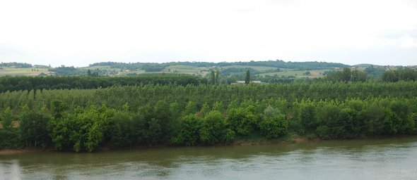 Dans la vallée de la Garonne, la vigne produisant un vin de qualité moindre, les boisements ont tendance à remplacer cette culture et à occuper des surfaces importantes. Sur les terres alluvionnaires du fond de vallée, ce sont des peupleraies qui se multiplient, rendant les abords du fleuve largement opaques.