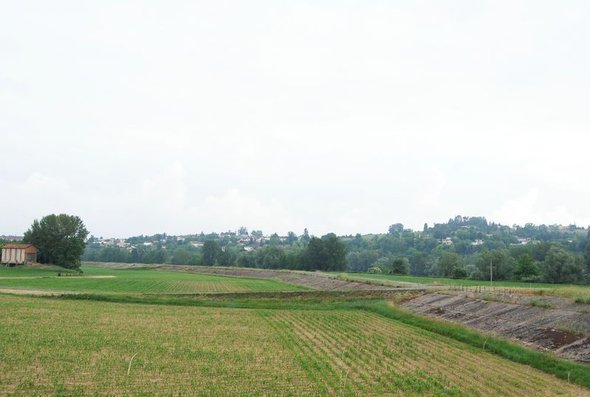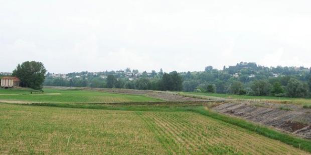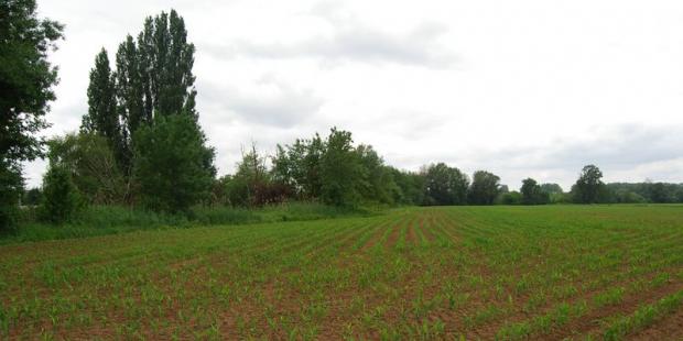 Autour de Loupiac, un relief plus doux freine cette évolution et permet le maintien global de la viticulture, mais sans la prémunir face au développement des extensions urbaines. Des terres labourées dans le lit majeur.