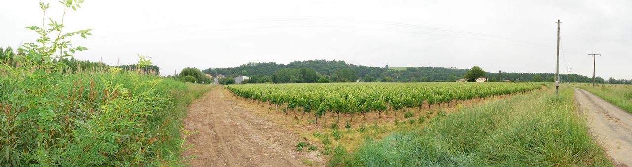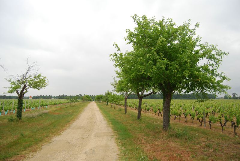 Jusqu’à la commune de Camblanes-et-Meynac, la rive droite reste plus occupée par des exploitations viticoles, tandis qu’en rive gauche, les vignes sont concentrées autour du village d’Isle-Saint-Georges. Ces cultures ne s’encombrent pas de la trame bocagère arborée des marais, et les horizons sont ici bien plus ouverts. La ripisylve de la Garonne, constituant tout de même une limite, dessine un liseré plus sombre autour de ces domaines : les lisières boisées restent une composante des paysages de la vallée.