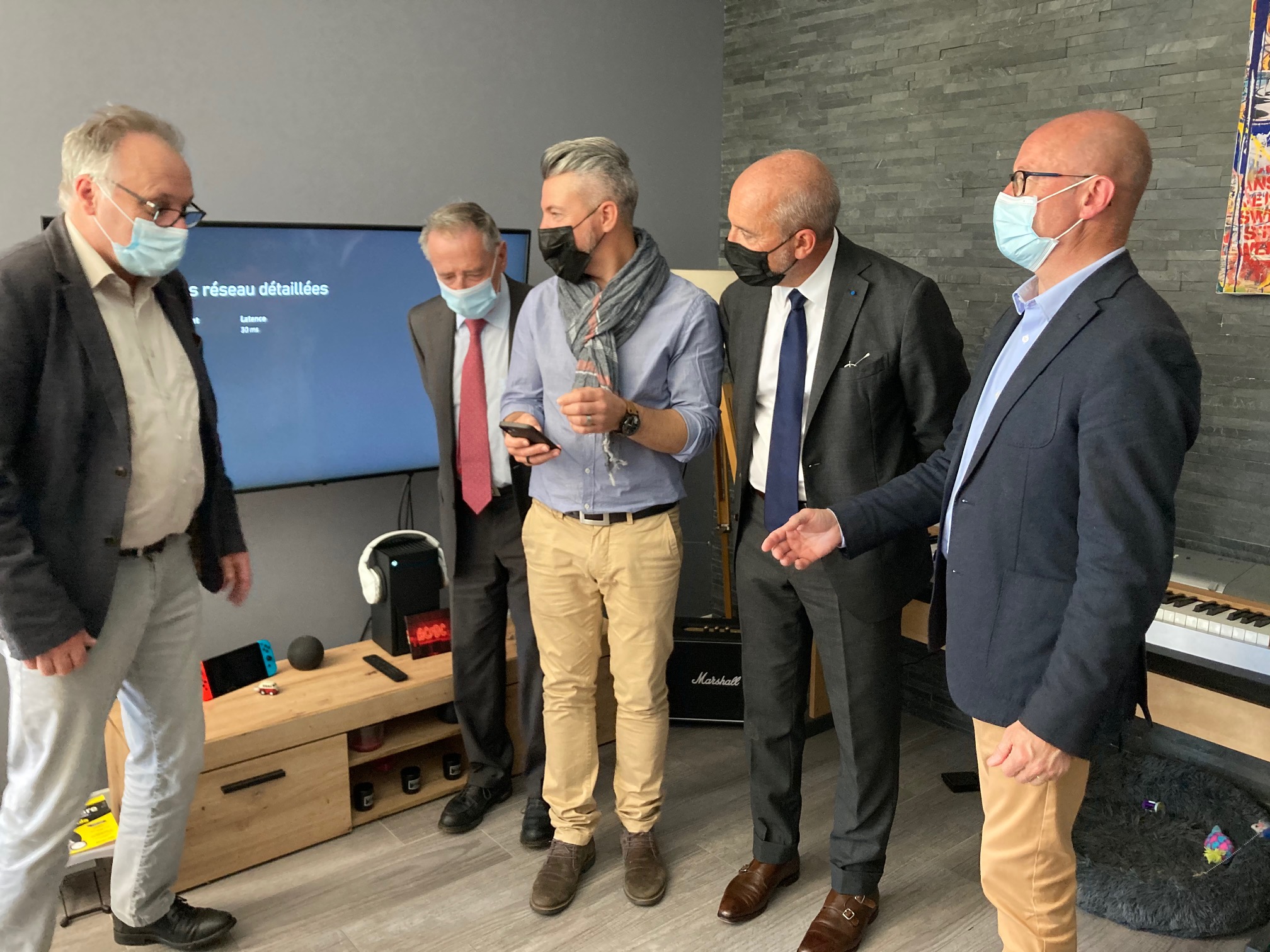 Jean-Luc Gleyze, président du conseil départemental de la Gironde, Stéphane Richard, Président-Directeur Général du groupe Orange, Pierre Ducout, président de Gironde numérique, Matthieu Rouveyre, vice-président du conseil départemental chargé de la citoyenneté, des relations avec les usagers, de la communication et des accès numériques, Arnaud Delaroche, directeur général de Gironde Très Haut Débit, se félicitent de l'avancée des travaux en Gironde, et cela en dépit de la situation sanitaire particulièrement contraignante, des problématiques sur l'aérien et des intempéries.