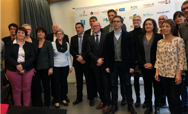 * Jean-Luc Gleyze, président de la Gironde, Laurent Ughetto, président de l’Ardèche, Henri Nayrou, président de l’Ariège, André Viola, président de l’Aude, Germinal Peiro, président de la Dordogne, Philippe Martin, président du Gers, Georges Méric, président de la Haute-Garonne, Jean-Luc Chenut, président d’Ille-et-Vilaine, Xavier Fortinon, président des Landes, Pierre Camani, président du Lot-et-Garonne, Mathieu Klein, président de Meurthe-et-Moselle, Alain Lassus, président de la Nièvre, et Stéphane Troussel, président de Seine-Saint-Denis.