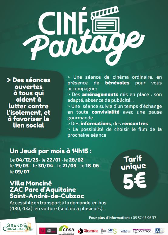 Ciné partage sont des séances de cinéma intergénérationnelles ouvertes à tous qui aident à lutter contre l'isolement et qui favorisent le lien social.