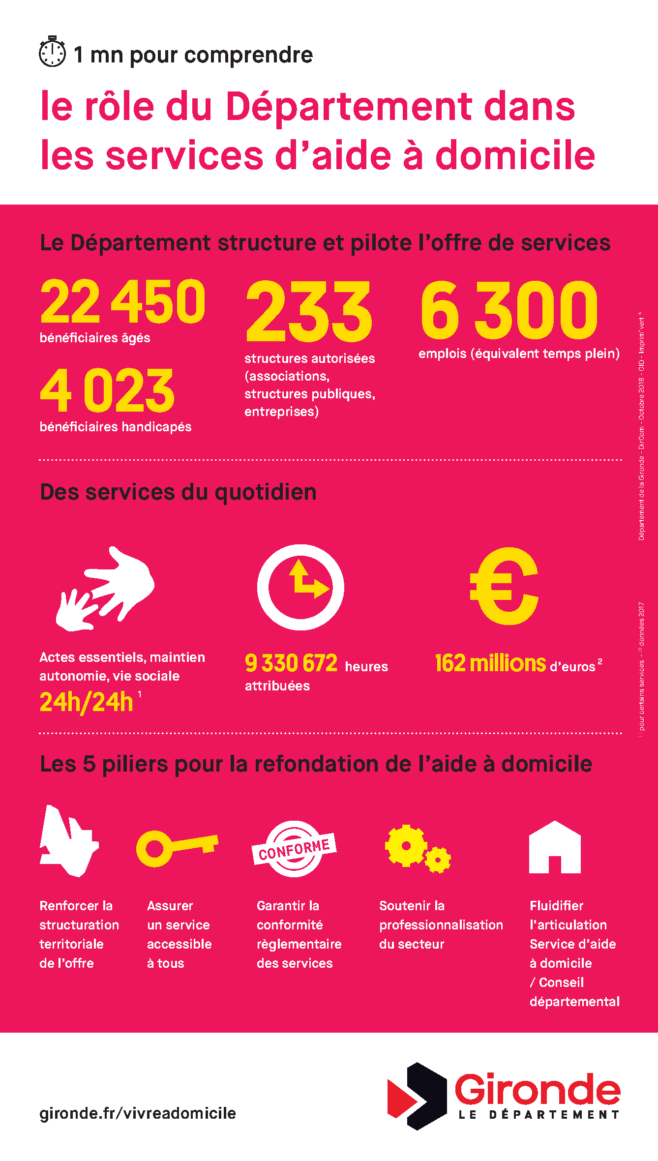 Le Département de la Gironde compte 188 services autonomie à domicile (SAD) autorisés qui emploient des aides ménagères et auxiliaires de vie intervenant chez les personnes âgées ou des personnes en situation de handicap.