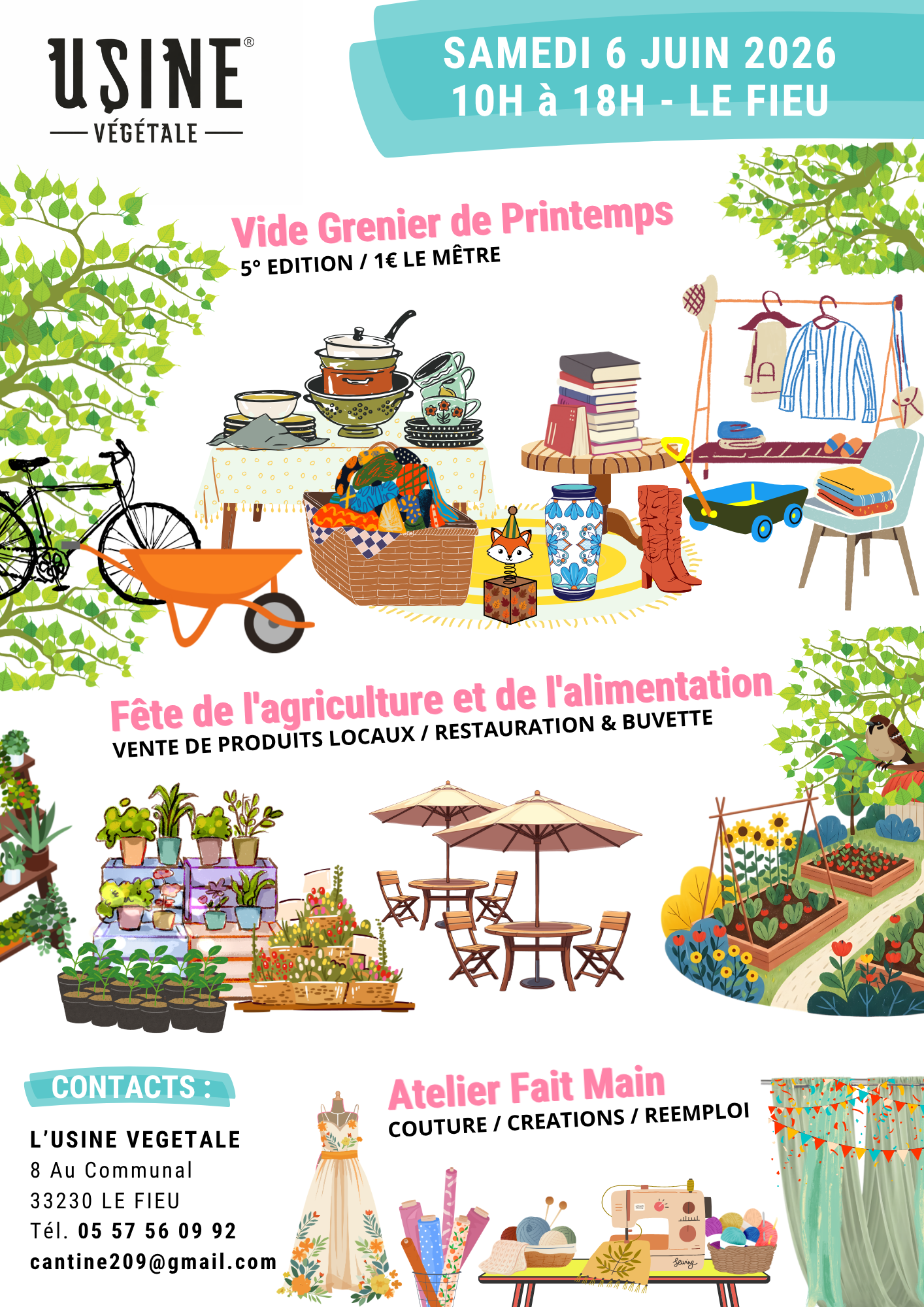 Bienvenue à l'Usine Végétale ! Un évènement annuel et Printanier qui ouvre la belle saison au jardin : Vide grenier / Atelier Fait Main / Produits locaux / Restauration et Buvette !