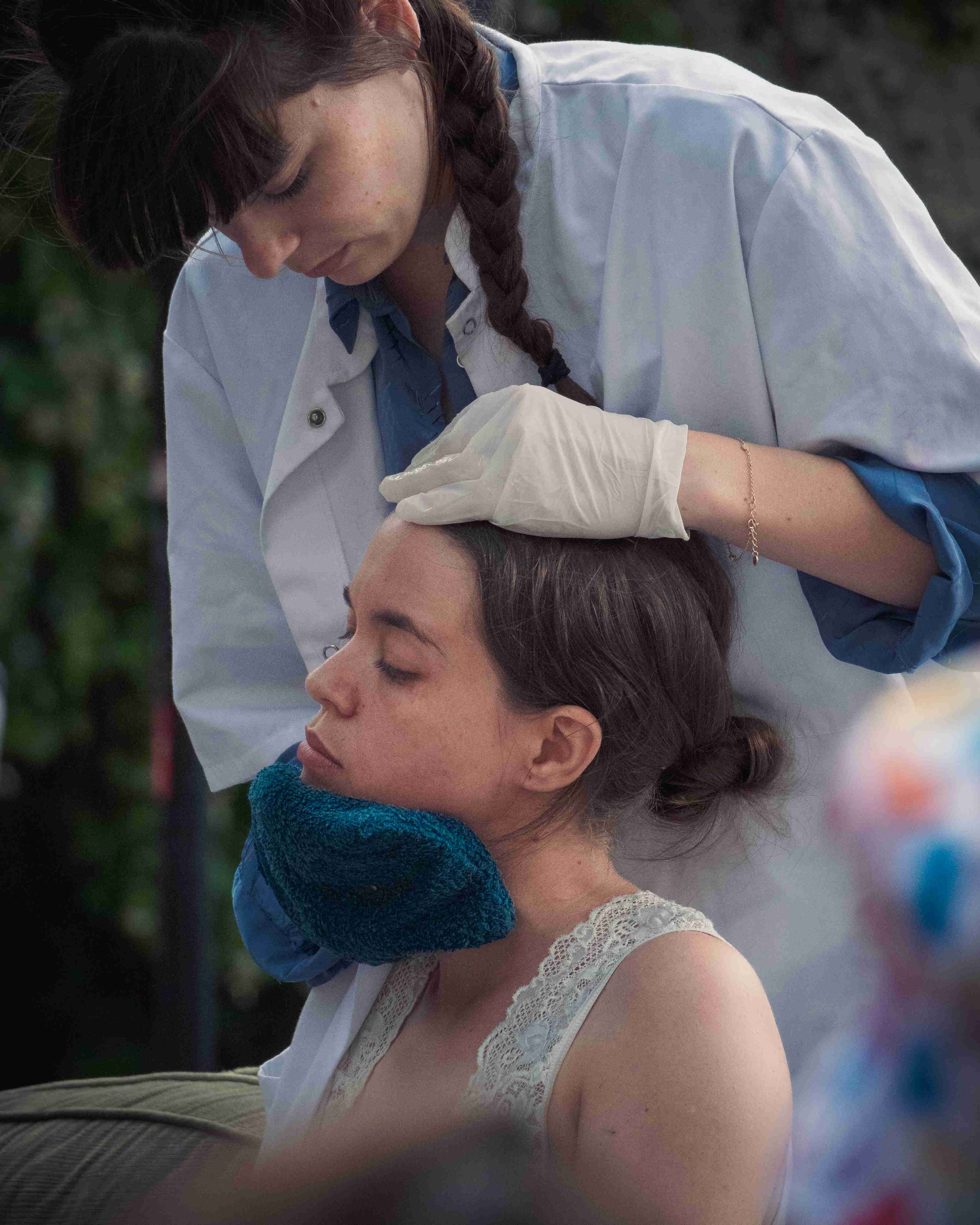 Tout le monde est bientôt prêt, il ne manque que Mme Girot et Mme Martinez. Le temps s’étire, le début de la fête semble s’éloigner. Accompagnées de Solène et Marina, leurs auxiliaires de vie, le quotidien s’invite, l’intimité se dévoile. À travers quelques instants de vie, elles se rencontrent, se connaissent, se confient et finissent même par se confondre. Derrière les gestes du soin, un lien profond se tisse. Pré-Care plonge dans cette réalité trop souvent méconnue, celle des auxiliaires de vie et de leurs bénéficiaires, où chaque jour est une nouvelle histoire à écrire.