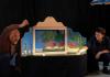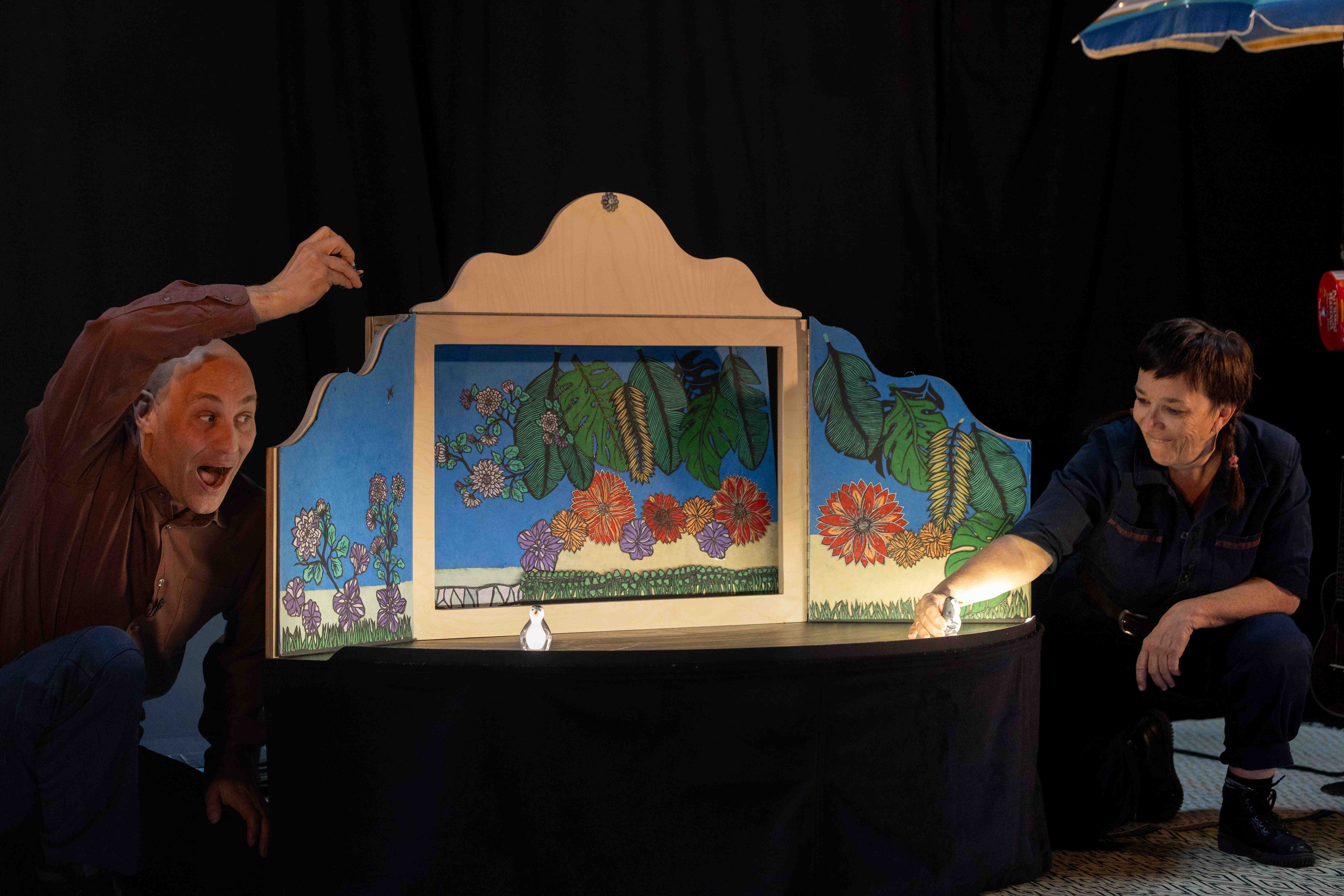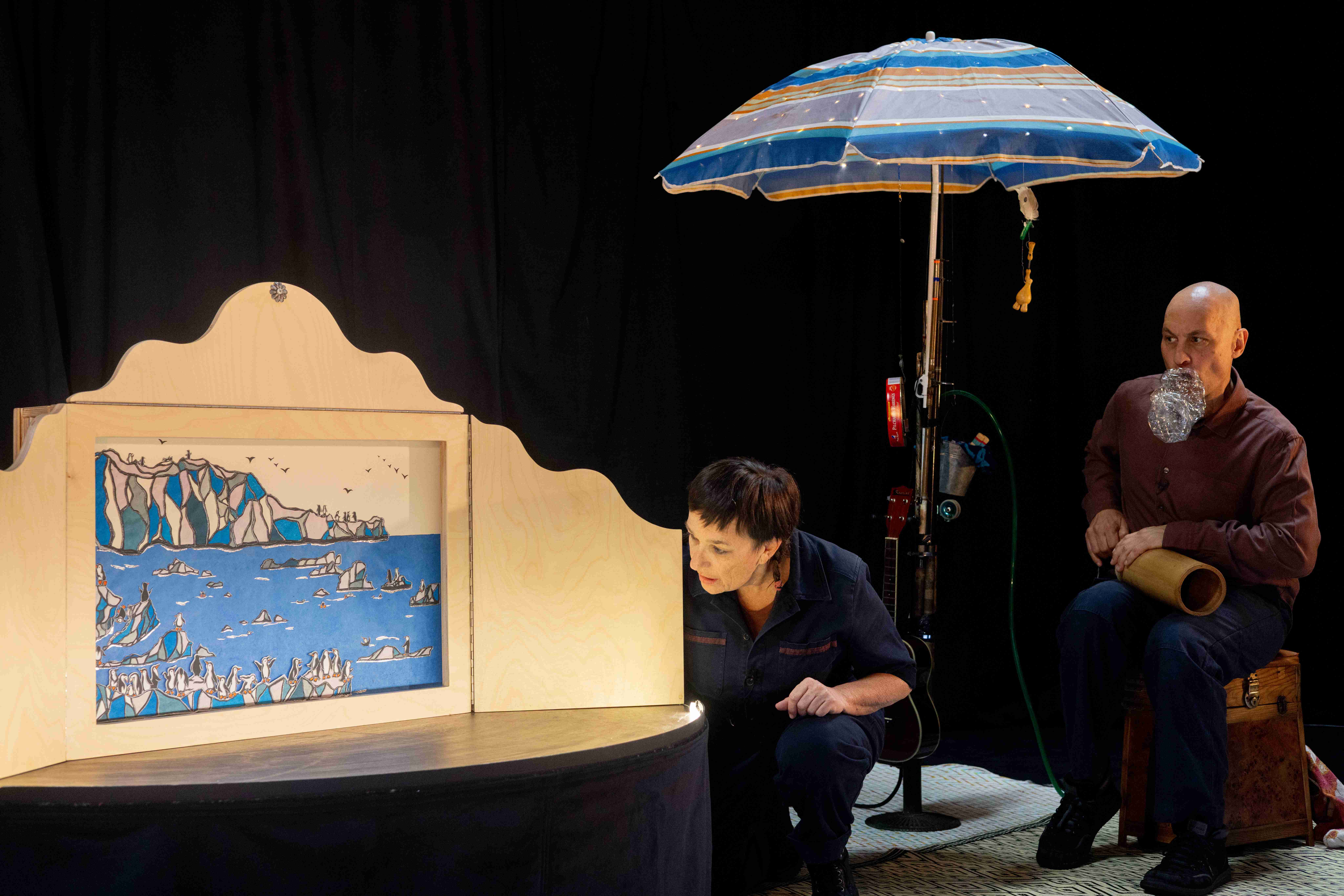 TERRE ! raconte l’histoire d’une bande de manchots qui se retrouvent soudainement à errer sur l’océan, accrochés à leur bloc de glace qui n’a rien trouvé de mieux que de se détacher du continent blanc. Voilà qui est contrariant ! Mais comme ils aiment à se répéter « il n’y a pas de problème sans solution » il est donc évident qu’ils vont bientôt pouvoir poser pattes sur une nouvelle terre accueillante. Seulement voilà... débarquer chez les autres, ce n’est pas aussi simple qu’ils le prévoyaient. Un conte plein d’humour et de chansons qui nous propose de réfléchir ensemble sur le thème de l’accueil.