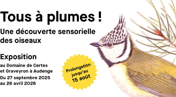 Le domaine de Certes et Graveyron accueille depuis le 27 septembre 2025 l'exposition « Tous à plumes ! Une découverte sensorielle des oiseaux » et face à son franc succès, plus de 12 223 visiteurs à ce jour, a décidé de la prolonger jusqu'au 15 août 2026.