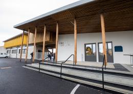 Un ancrage territorial : création d’un lien privilégié avec la ville pour rendre accessibles les locaux hors temps scolaire, utilisation de matériaux faisant le lien entre région bordelaise et Médoc avec l’emploi de la pierre bordelaise et de teintes de bardage qui rappellent la terre cuite de la brique de Brach.
