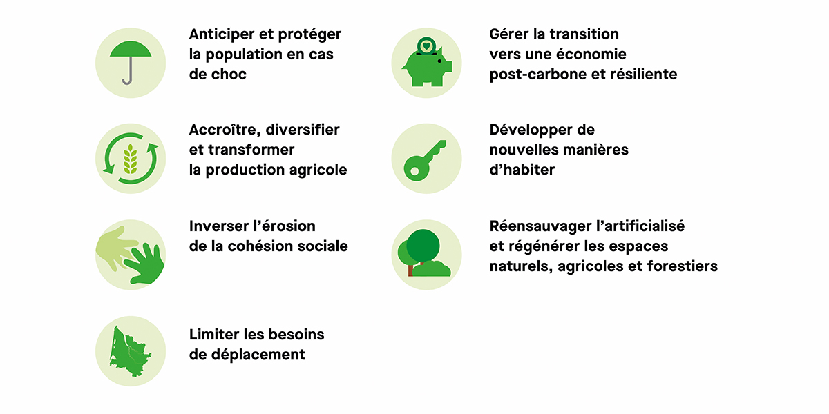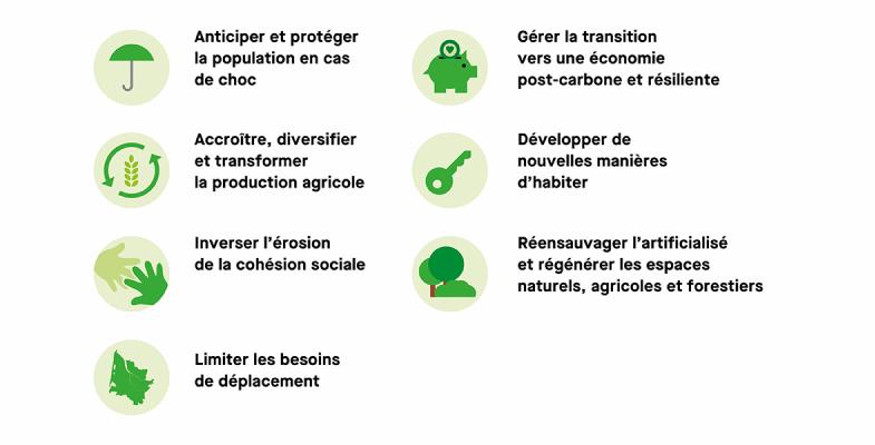 • Repenser l’Habitat : définition d’un cadre à l’ensemble des politiques publiques liées à l’habitat afin de développer de nouvelles manières d’habiter adaptées aux enjeux de résilience territoriale.