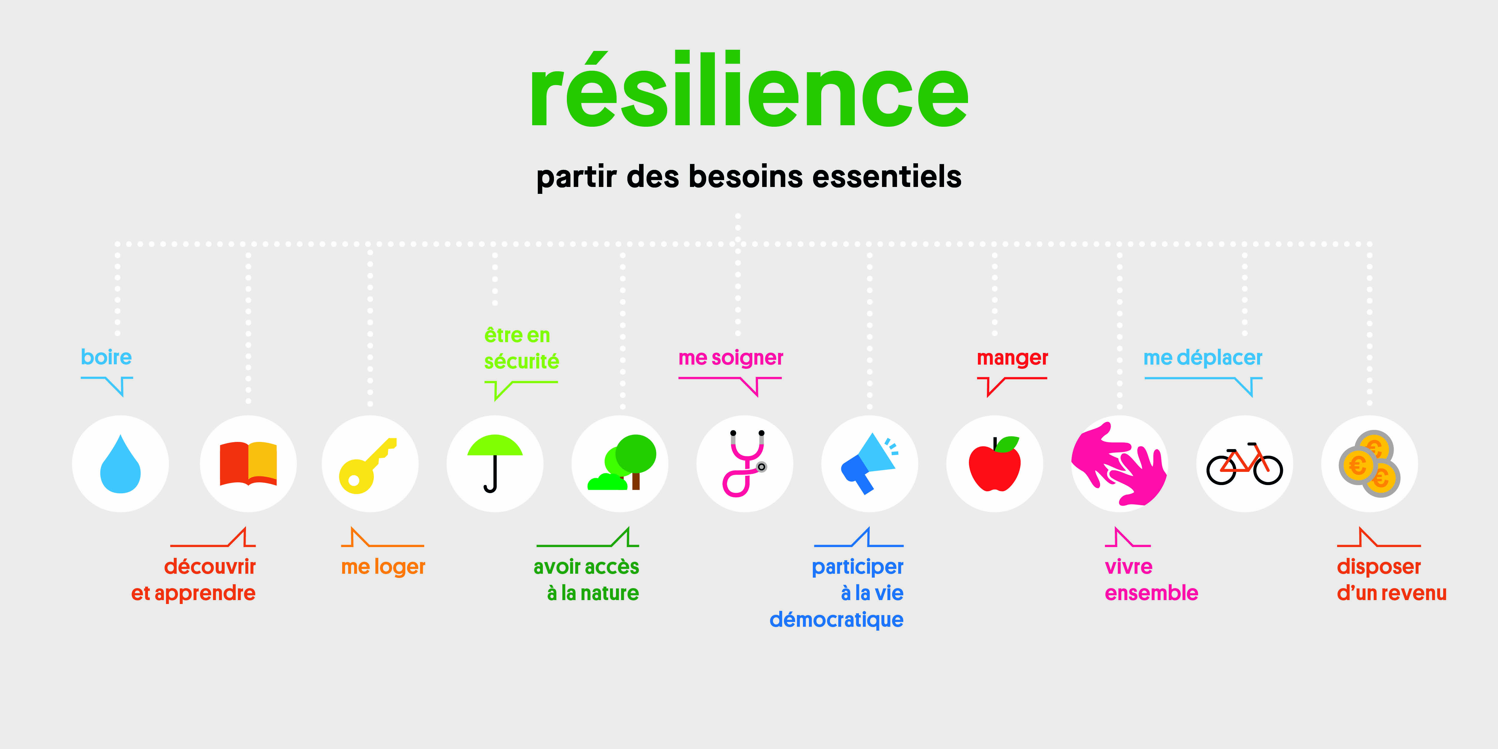 Ainsi, un territoire résilient assure la sécurité de sa population, répond aux besoins fondamentaux et garantit la cohésion sociale et le bien-être et ce quel que soit le contexte de stress chroniques (ex : tensions géopolitiques et économiques, restrictions sur les ressources, dérèglement climatique…) ou de chocs brutaux (ex : conflit social, krach boursier, catastrophe naturelle ou industrielle…).