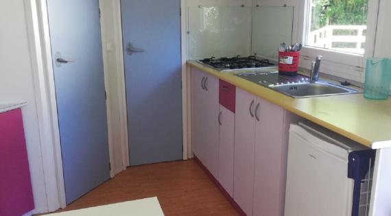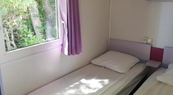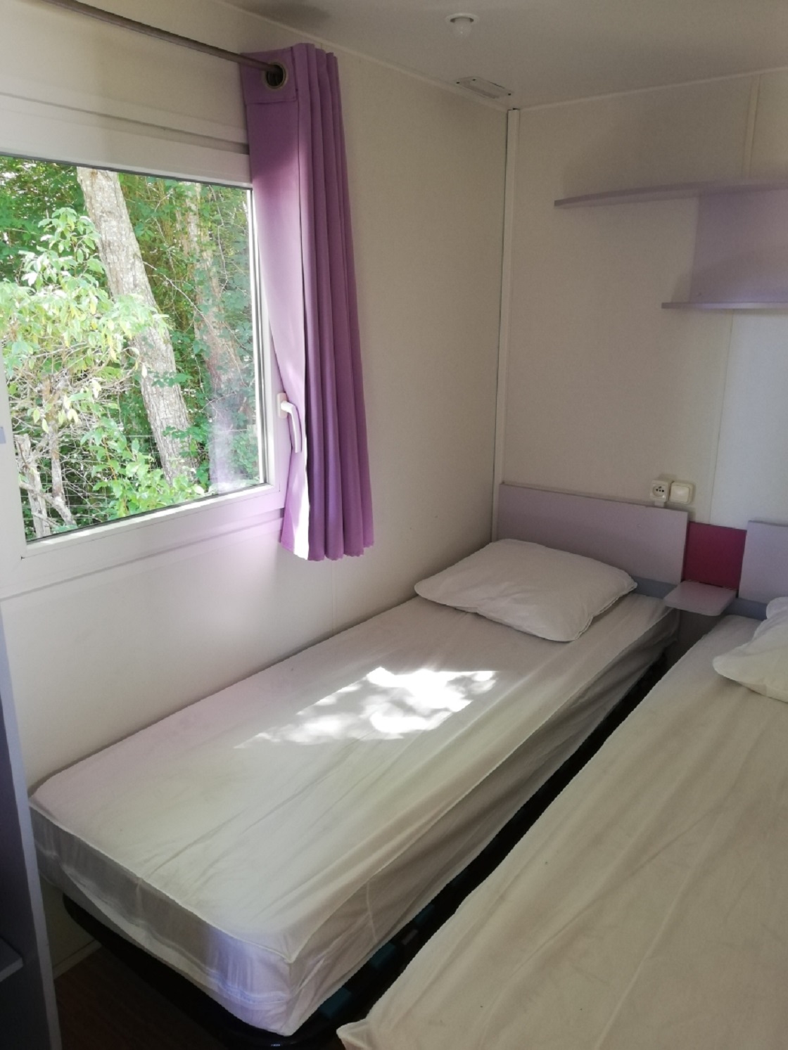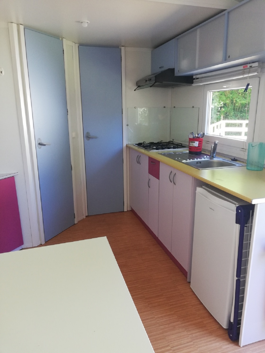 Mobil-home 4 couchages, 2 chambres (Prévoir votre literie), cuisine équipée, salle d'eau, salon, terrasse.