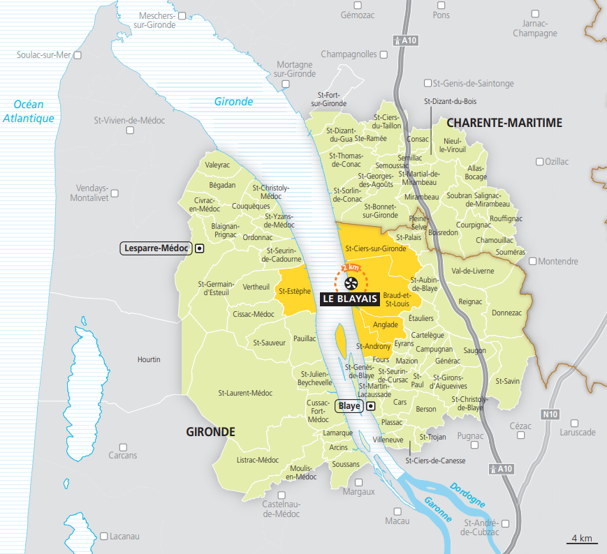 Le centre nucléaire de production d’électricité (CNPE), situé sur l’estuaire de la Gironde à Braud-et-Saint-Louis, appartient et est exploité par EDF. Construit à la fin des années 1970 et progressivement mis en service à partir de 1981, il est doté de 4 réacteurs à eau pressurisée (REP) d’une puissance de 900 MWe chacun.